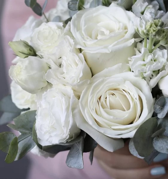 Состав: Лизиантус, Маттиола, Роза Эквадор, Эвкалипт