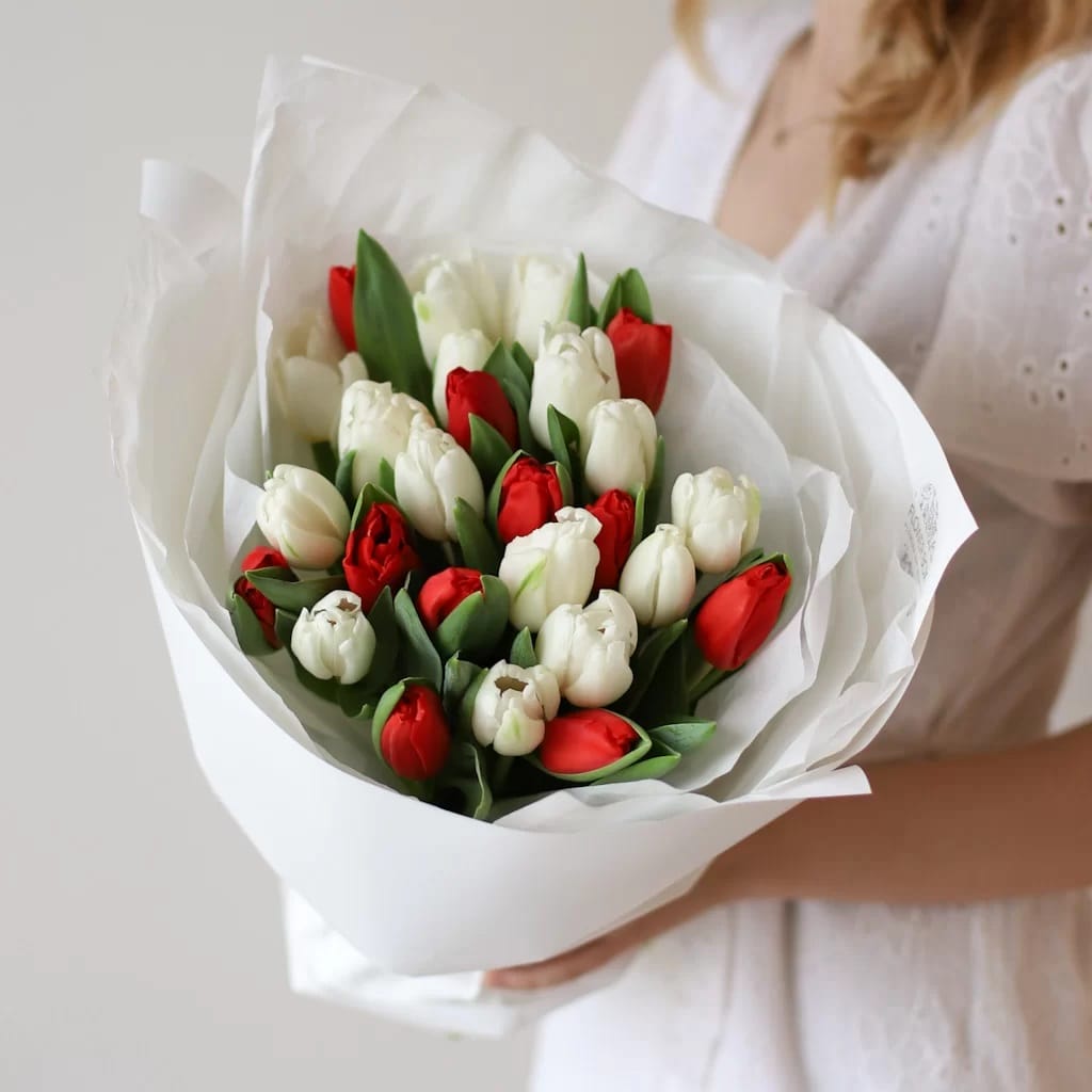 Белые и красные тюльпаны в оформлении «Factura .two»