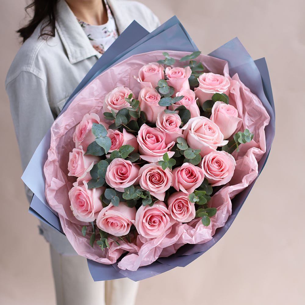 21 роза с эвкалиптом «Искусство Расслаблять»