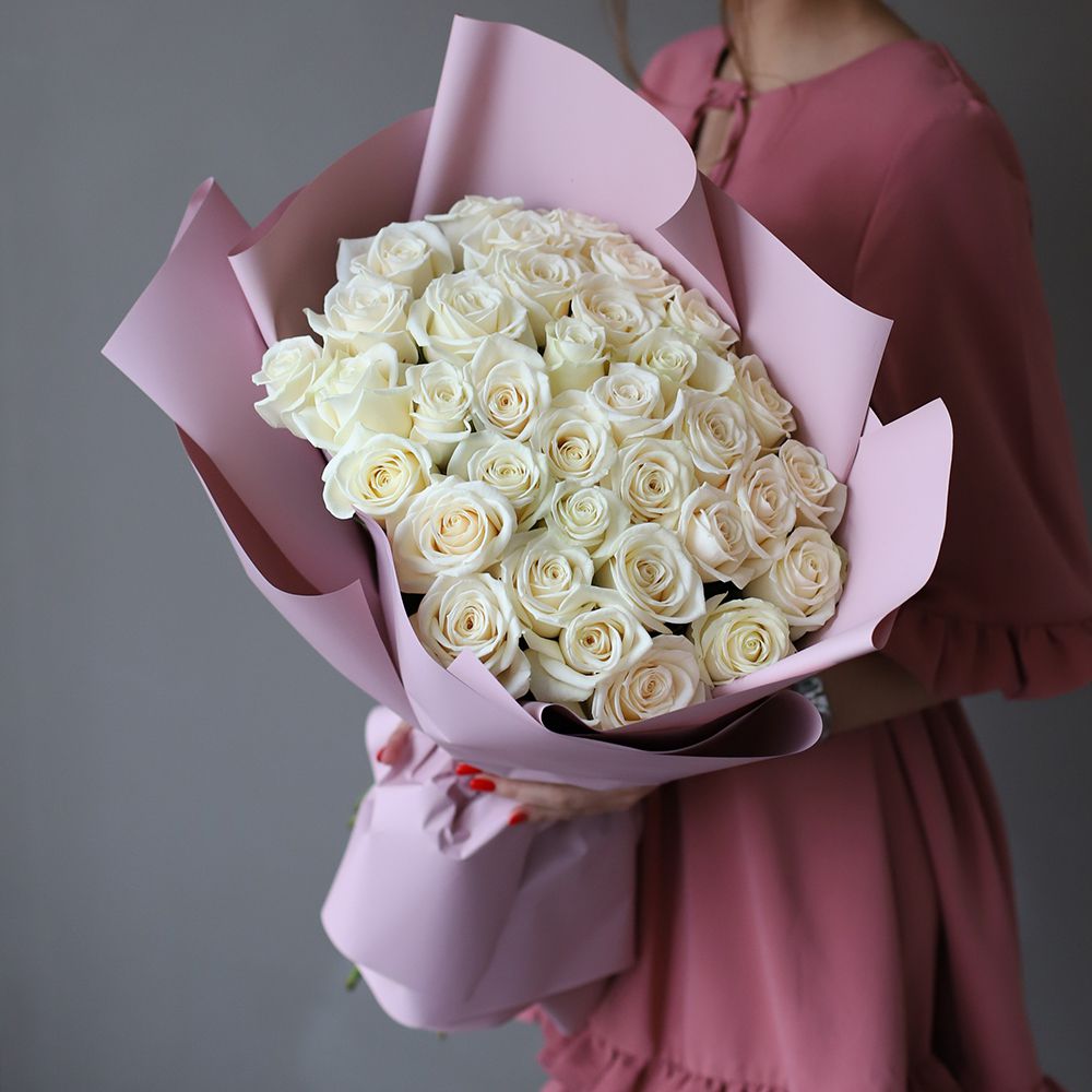 Букет из 35 белых розы в оформлении