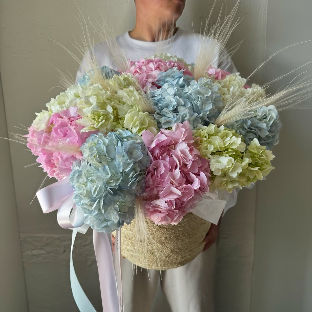 Корзина с гортензиями микс «Franna»