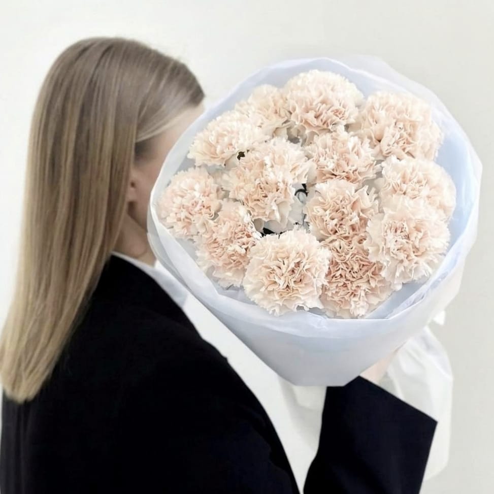 Composition: dianthus (premium carnation) powder shade 13 pcs., designer white/translucent matte wrapping.