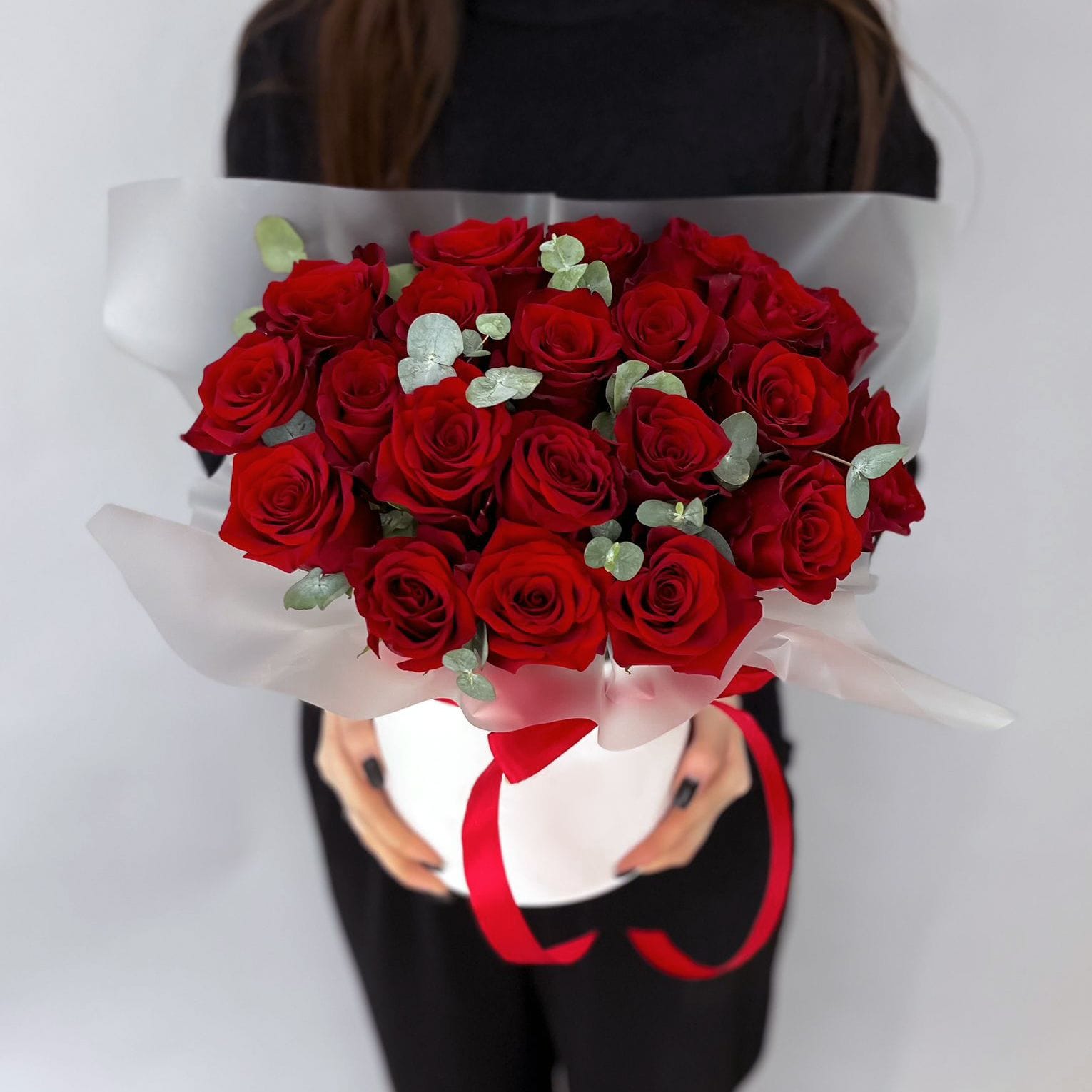 Rose Red - 21 pcs, eucalyptus.