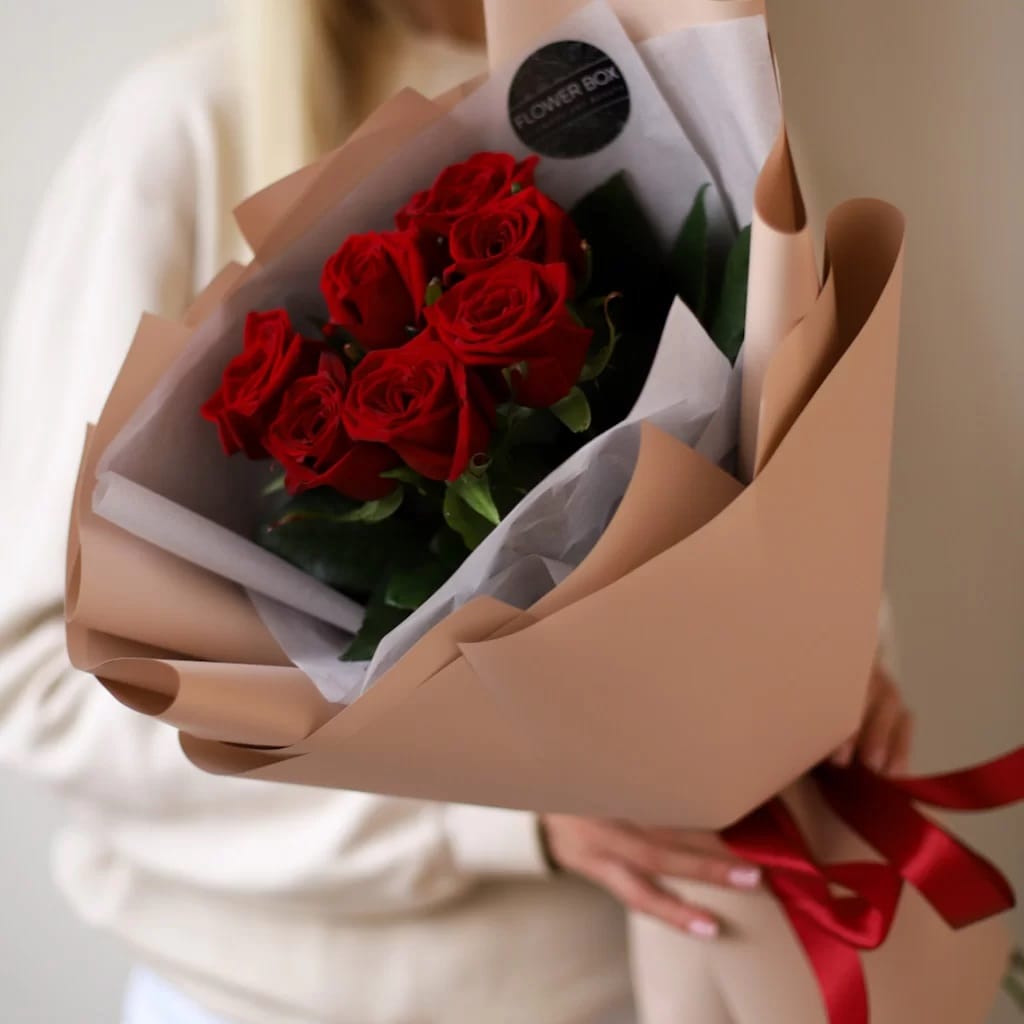 Состав: Роза красная - 7 шт.