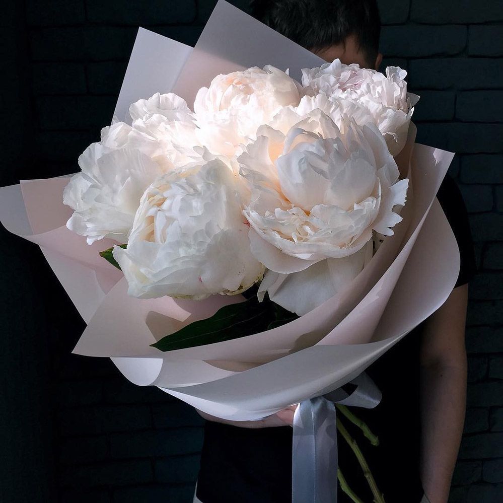Белые пионы в оформлении «Dusk»