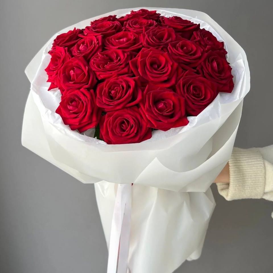 Классический символ любви и глубокой привязанности, воплощенный в 21 безупречной красной розе. Высокие стебли и плотные бутоны с бархатистыми лепестками идеально контрастируют с белоснежной дизайнерской упаковкой. Этот букет создан для того, чтобы подчеркнуть важность момента и подарить незабываемые эмоции.