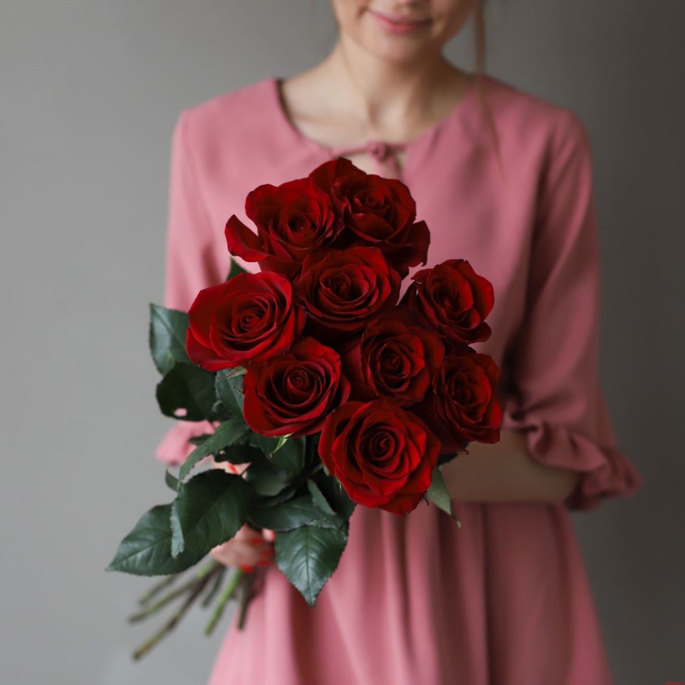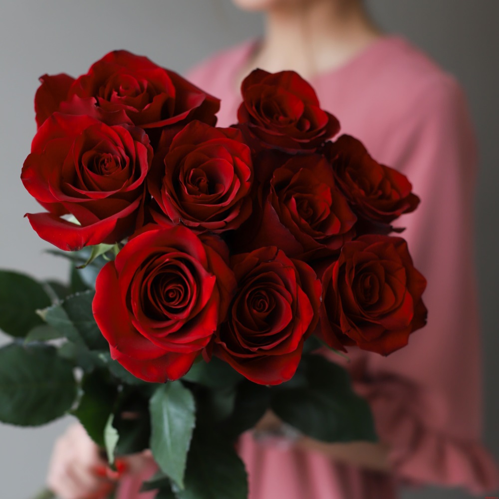Роза одноголовая - 9 шт. (бордовая 90 см).