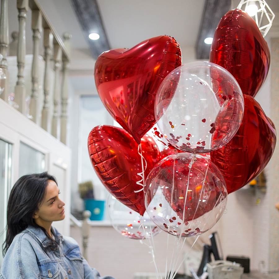 Шар фольгированный с гелием 18d "Сердце красное" – 5 шт.,