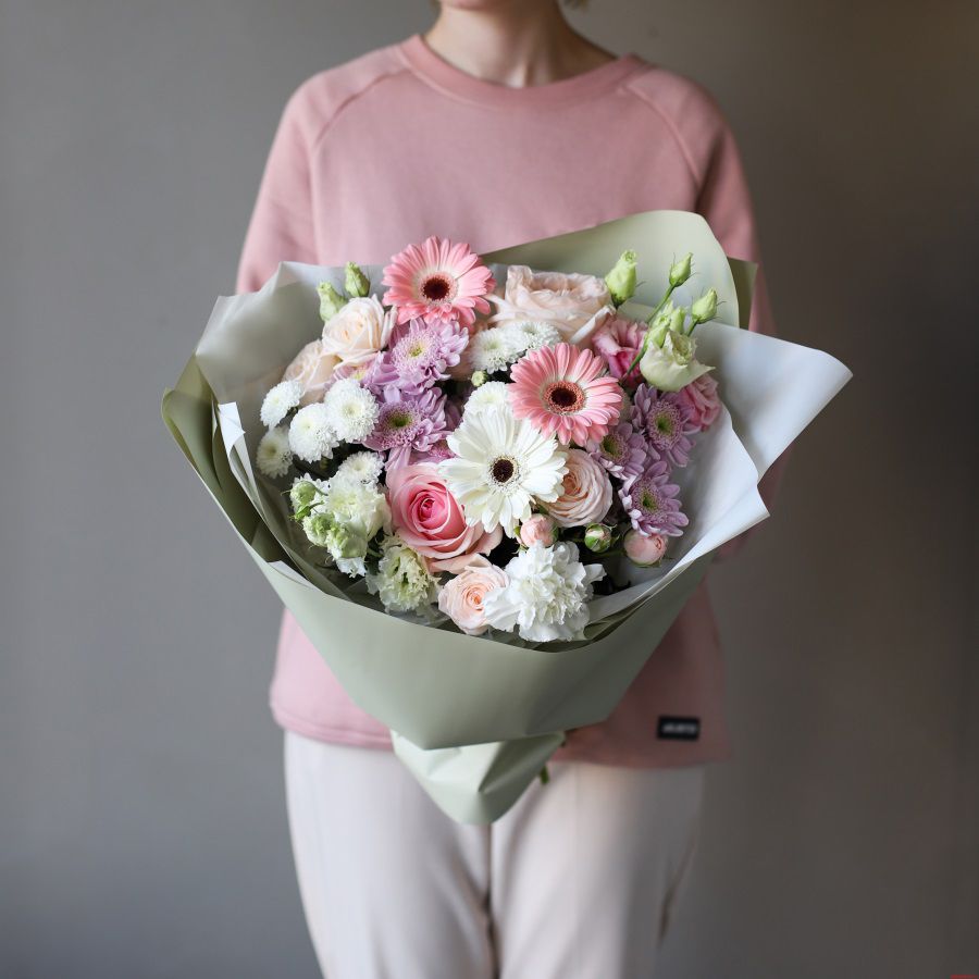 В составе букета возможен сезонный цветок! Если какого-то цветка нет в наличии, флорист предложит равноценную замену.