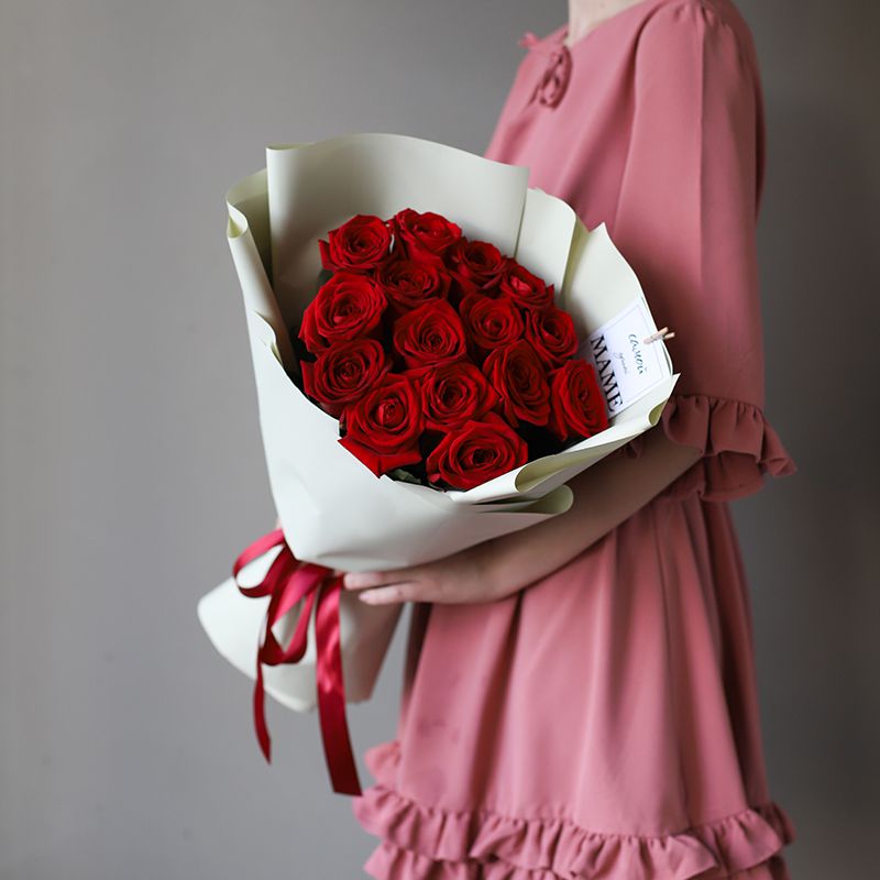Состав: 15 роз RED NAOMI, упаковка.