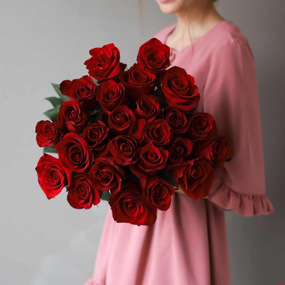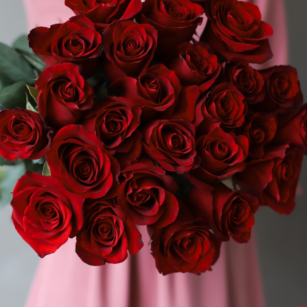 Роза бордовая одноголовая Эквадор - 25 шт.