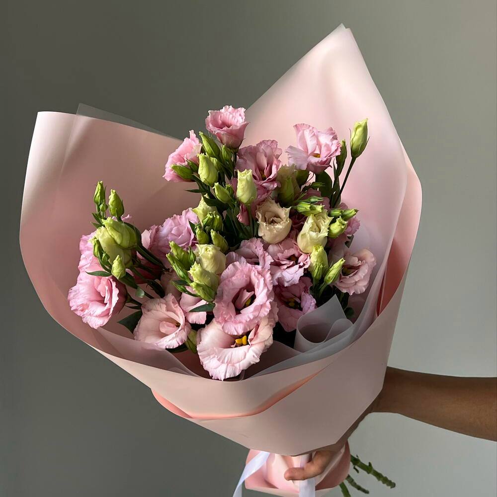 Нежное воплощение романтики и легкости. Монобукет из 5 пышных веток розовой эустомы покоряет россыпью изящных бутонов, каждый из которых напоминает трепетную розу. Воздушная матовая упаковка в тон лепесткам создает гармоничный, визуально цельный и невероятно женственный образ. Эустома отличается потрясающей стойкостью, поэтому этот трогательный комплимент будет радовать получателя своей красотой долгое время.