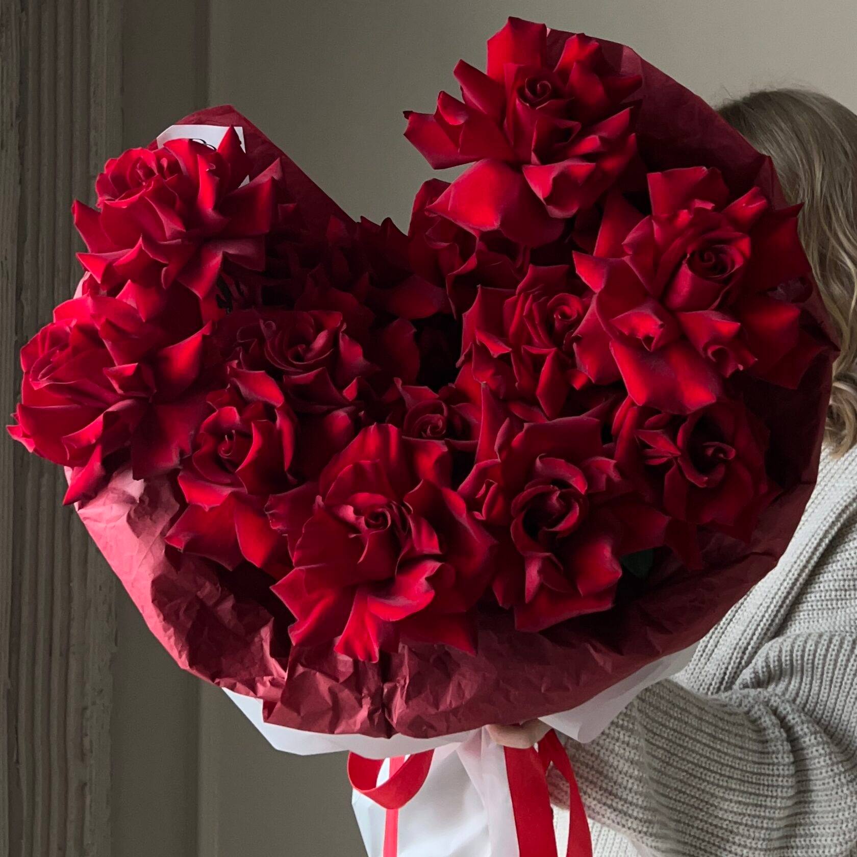 Воплощение парижского шика и высокого флористического искусства. Французские розы выделяются своим уникальным «вывернутым» раскрытием, которое превращает каждый бутон в пышное и фактурное произведение природы. Глубокий красный оттенок в сочетании с изящными изгибами лепестков создает образ статусной роскоши. Этот букет — идеальный способ выразить глубокое восхищение и безупречный вкус.