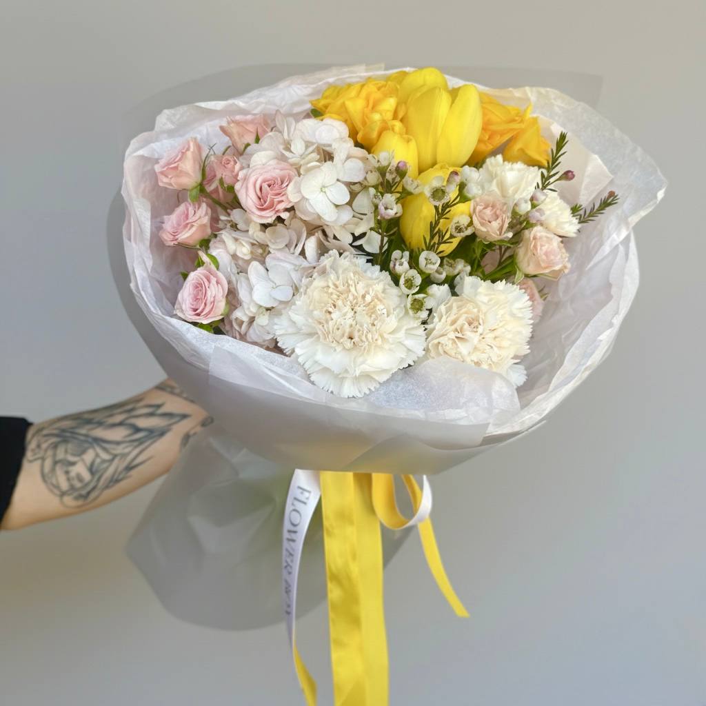 Авторский микс «Желтые тюльпаны и диантусы: Sunny Morning»